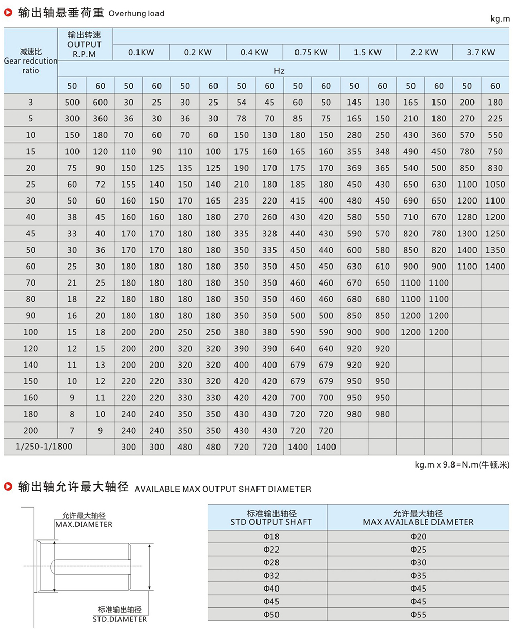 出力轴径对照表